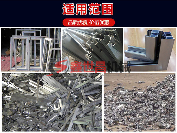 斷橋鋁破碎機適用于各種廢舊鋁型材、鋁基復合材料、廢鋁、鋁錠、鋁箔、鋁屑、鋁合金型材等廢舊鋁材的破碎加工,也可用于廢舊自行車、油漆桶、機油桶、柴油桶、汽車油箱、汽車水箱、自行車架子、壓塊、廢舊電視機、舊家電、銅鋁水箱、鋁合金、廢機鋁、汽車散熱器等中型廢金屬。鑫世昌生產多種型號規格的斷橋鋁破碎機日產量從5噸到100噸,用戶可根據產量配置。